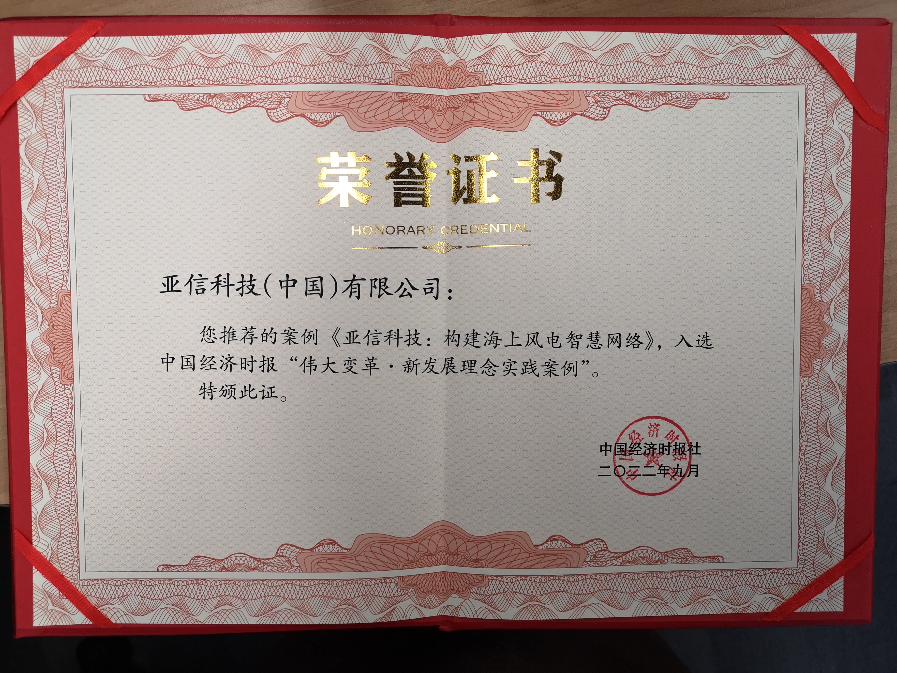 2022年9月 304am永利集团构建海上风电智慧网络入选中国经济时报“伟大变革·新发展理念实践案例”