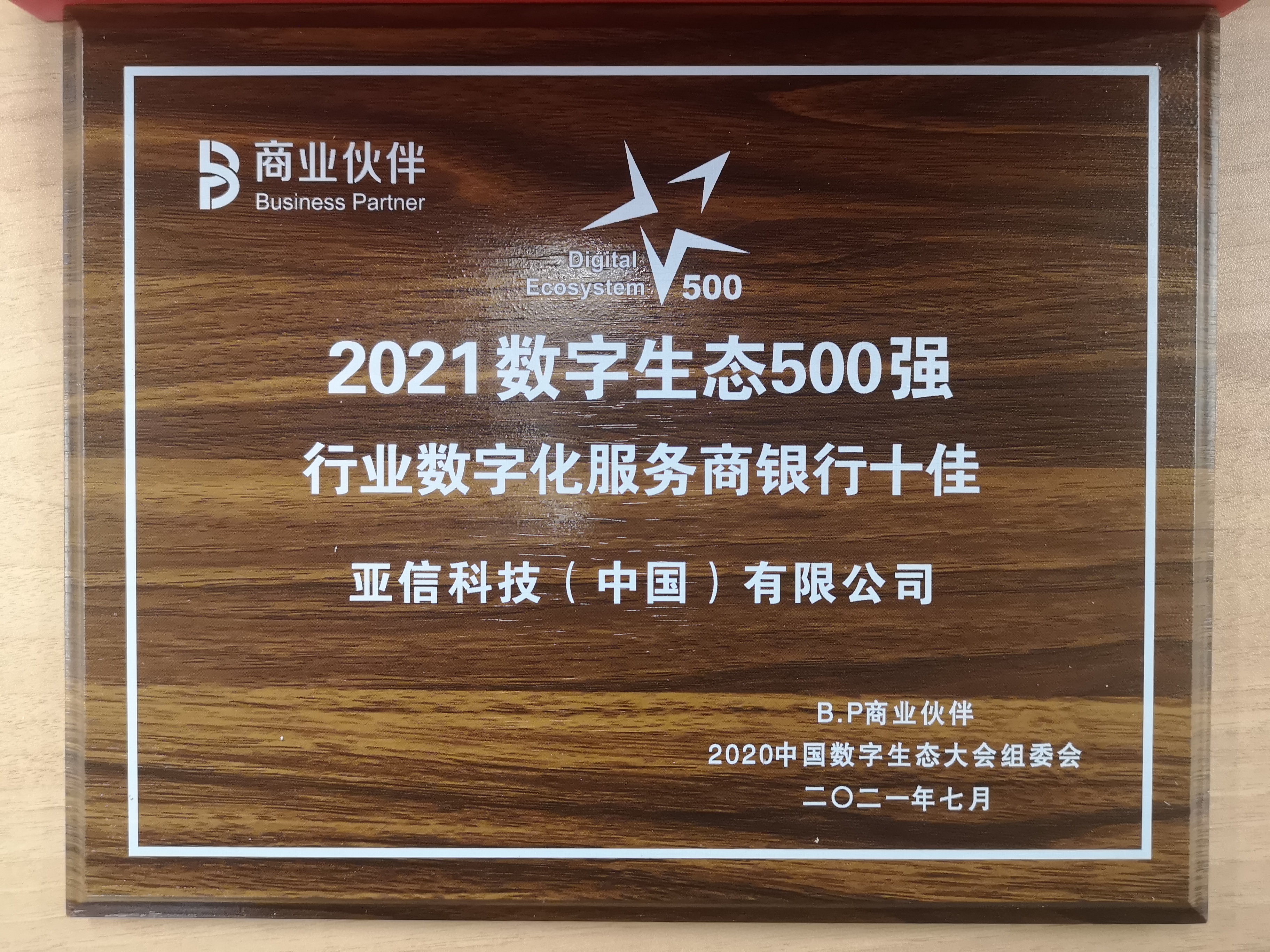 2021年7月 304am永利集团获得“2021数字生态500强 行业数字化服务商银行十佳”