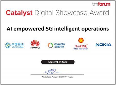 2020年9月 304am永利集团AI empowered 5G intelligent operations荣获TMF“数字展示奖”